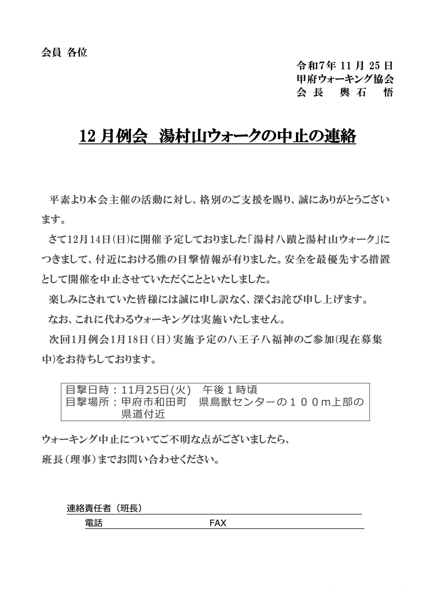 令和7年12月例会 湯村山ウォークは中止いたしました。