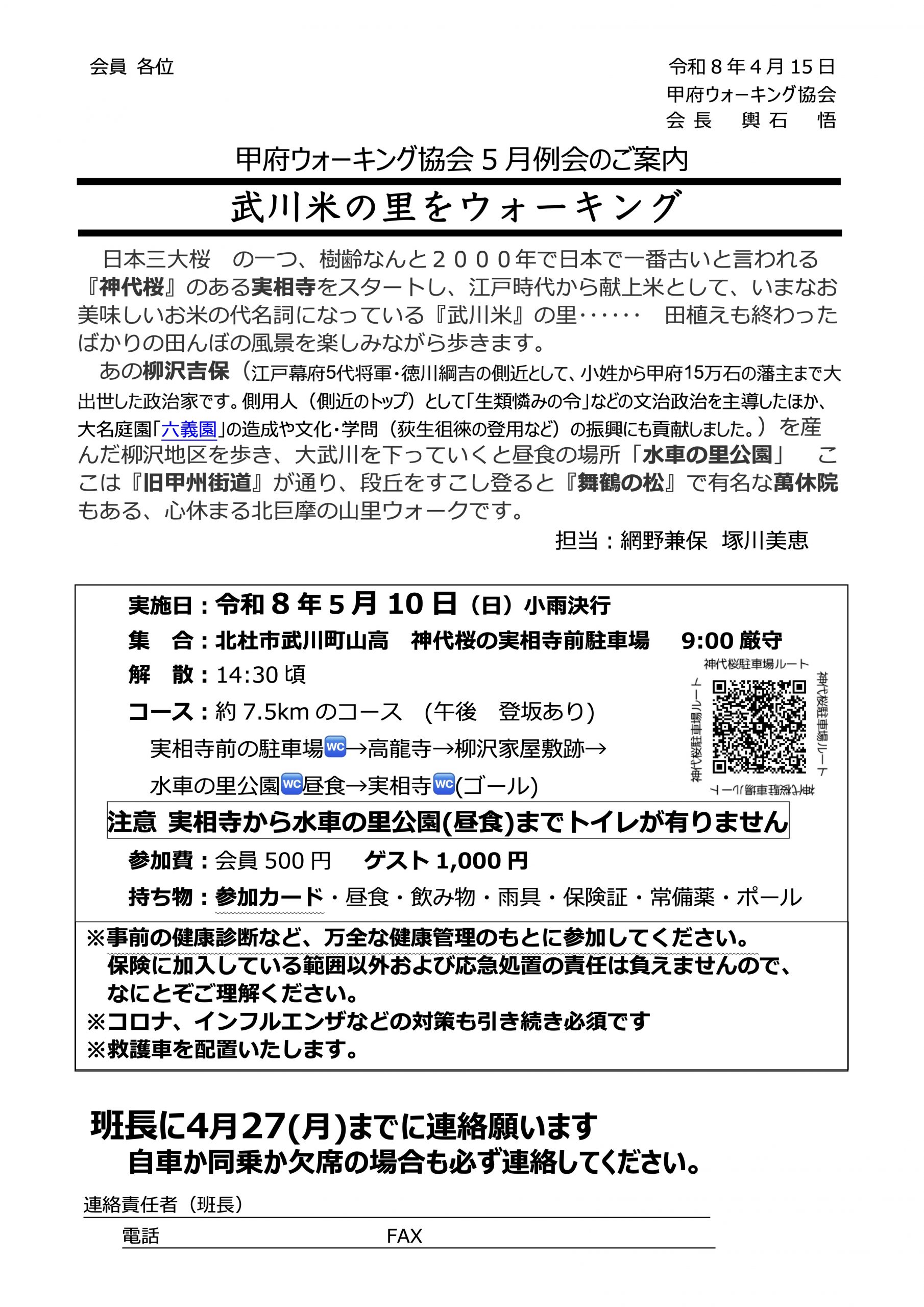 令和8年5月例会 武川米の里をウォーキング