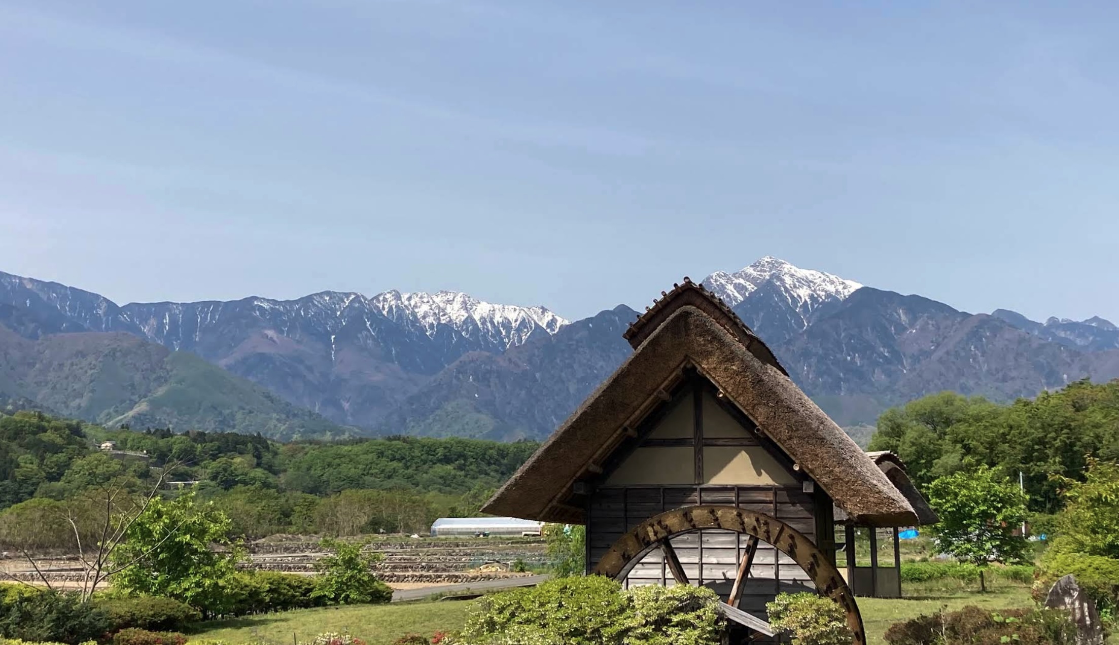 水車の里公園と甲斐駒ヶ岳